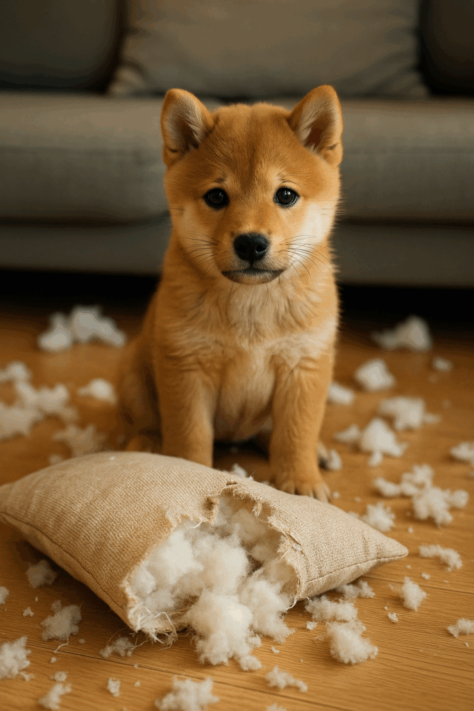 - 留守中にテーブルやソファー、クッションをガシガシ噛んでいる